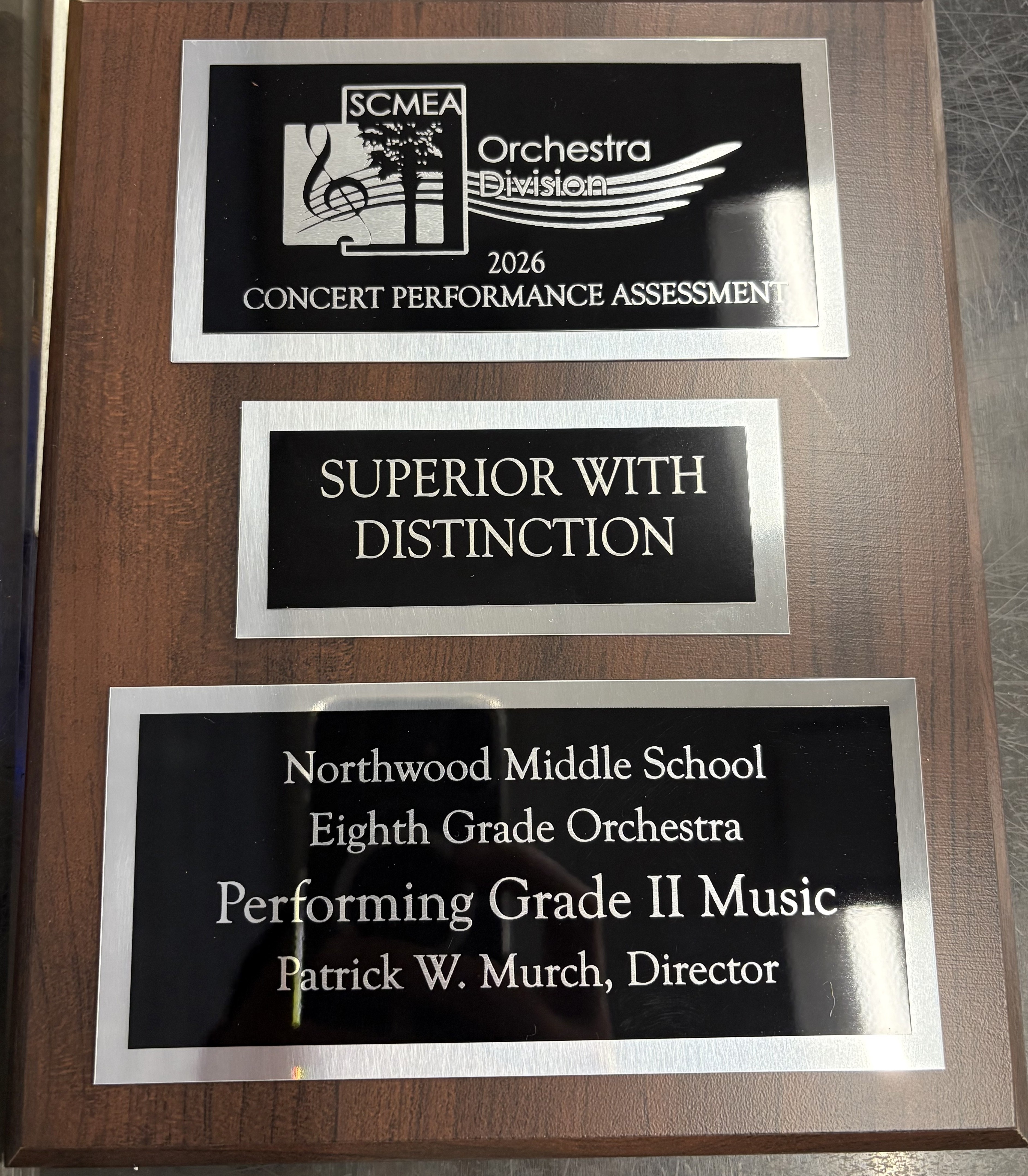 8th Grade Orchestra receives highest rating of Superior with distinction at Concert Performance Assessment!!